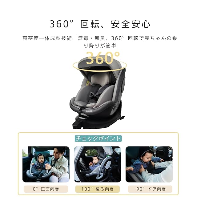 【 360度回転可能】乗せ降ろしの際にシートを簡単に回転できるため、無理な姿勢になることなく、赤ちゃんをスムーズに抱き上げたり、座らせたりすることができます。また、前向き・後ろ向きの切り替えも簡単に行えるので、成長や使用シーンに合わせた柔軟な対応が可能です。