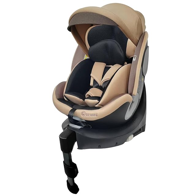GU MODE チャイルドシート 360度回転式 ISOFIX 新生児~12歳頃(身長40-150cm) ジュニアシート サポートレッグ 付き 成長に合わせて使える 長く使える 取付簡単 新安全基準R129適合 5年保証 メッシュタイプ(ブラウン・ブラック, フレックスシェード付き)
