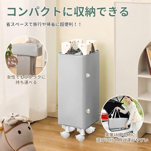 【優しい素材・折りたたみ簡単!】商品サイズ:110cm*65cm*78cm 折畳サイズ:25cm*25cm*78cm 内寸サイズ:103cm*65cm 高品質で着心地の良い素材を使用しております、赤ちゃんの肌に優しい。組み立て不要で、ママ一人でも簡単に展開・収納します。