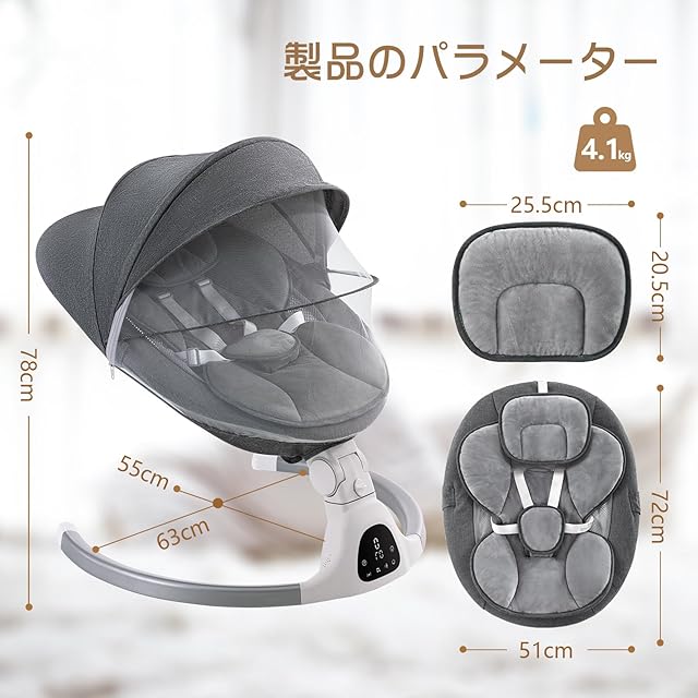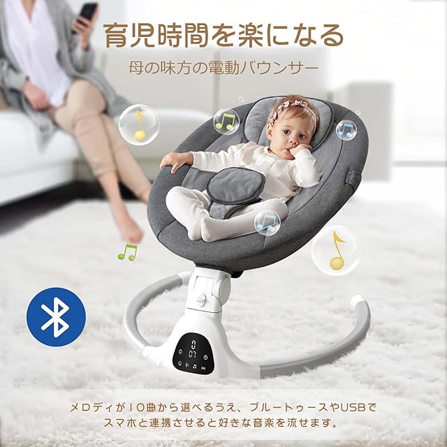 【スマート化】スマートセンススウィング機能が付き、該当ボタンを起動するまま、赤ちやんの動きを感知すると、電動バウンサーは自動的にスウィングします。