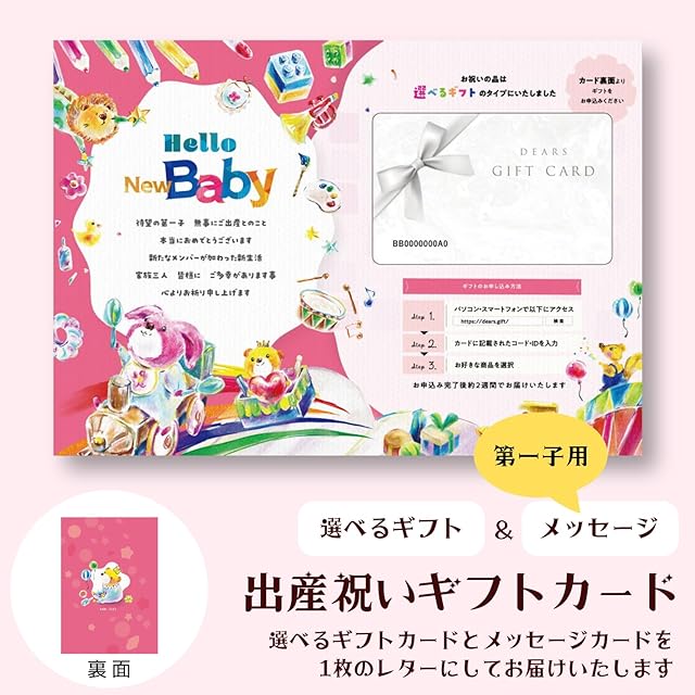 [出産祝いカタログギフトカード] ソレイユコース ( お祝いメッセージ付き ベビーギフト ベビーカタログギフト 男の子 女の子 ) (第一子 ピンク)