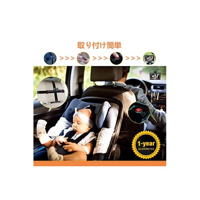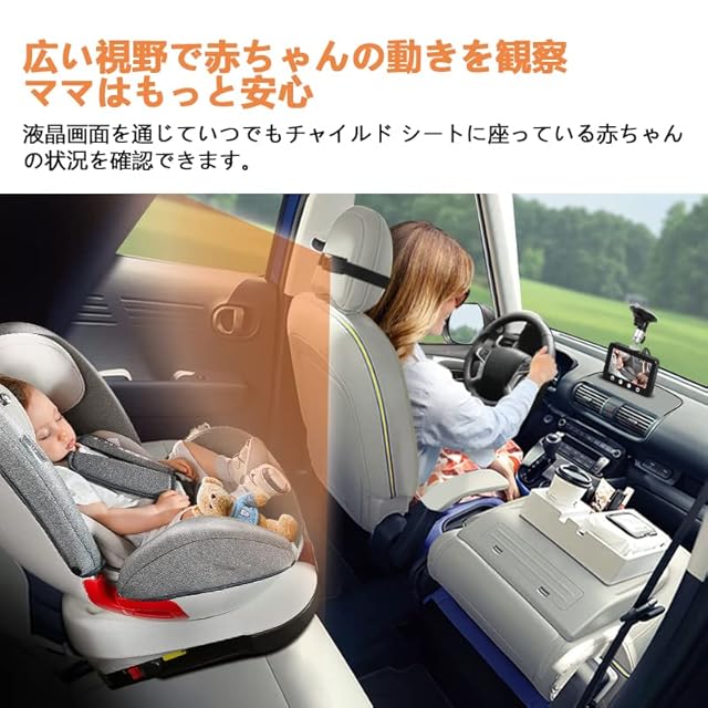 【安全運転】ベビーミラーは、運転中にお子様を監視するのに適です。 明るい 4.5 インチ HD ディスプレイは鮮明な表示を提供し、24 時間監視用の内蔵赤外線ナイト ビジョンも備えています。 従来の車のベビーミラーと比較して、より明確で実用的です。 後部座席で何が起こっているかを確認するために、常にミラーを調整したり、頭を回したりする必要はありません。 暗闇での運転時でも、お子様のあらゆる動きを簡単に観察できます。