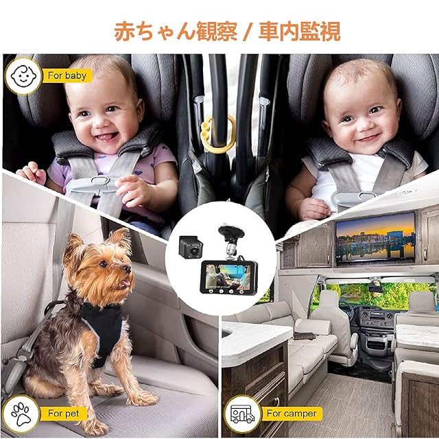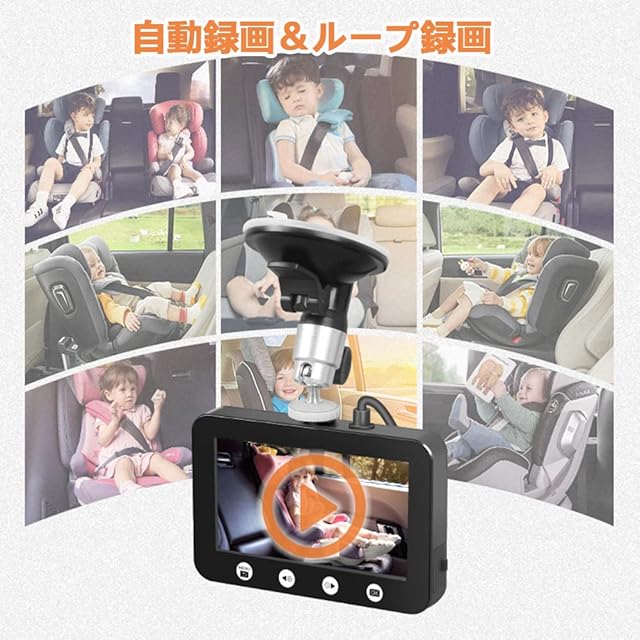 Motocam ベビーミラー 車用ベビーモニター カメラ 1080PフルHD 4.5インチ 赤外線暗視 100°広角 録画機能付 温度監視 角度調整可能 エンジン録画 ループ録画 ベビードライブレコーダー 赤ちゃん観察 車内監視 車載安全 安全性 取付簡単出C4.3
