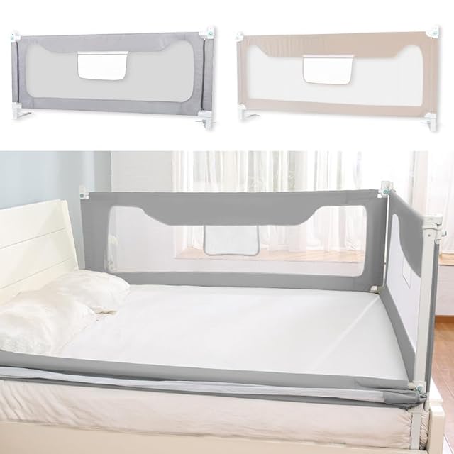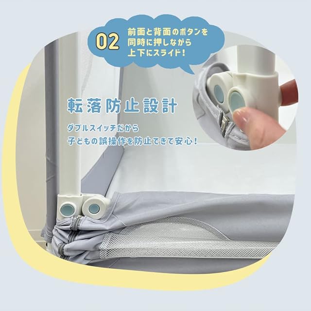 ベッドガード c13 200cm リニューアル版 ベッドフェンス ポケットつき ハイタイプ 洗える 転落防止 落下防止 布団ズレ防止 クッション ベビーサークル 幼児用 出産祝い 柵 赤ちゃん メッシュ Hugmuu (200cm, Gray)