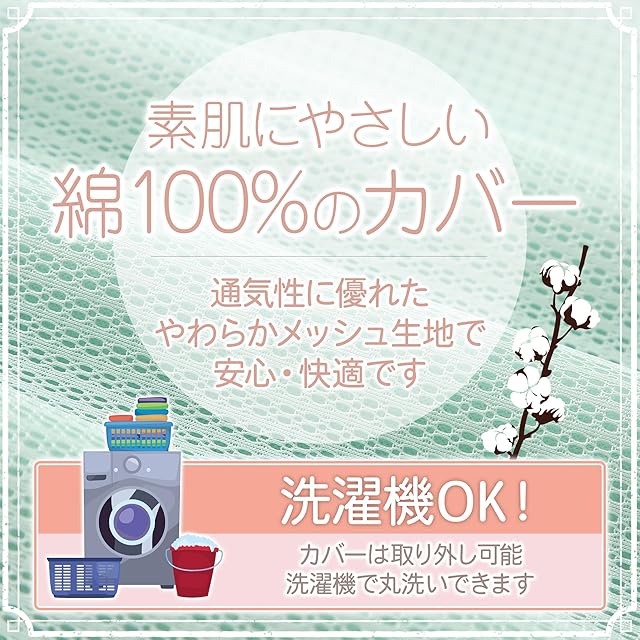 【カバー】通気性に優れた綿100%のメッシュ生地を使用し、いつでも安心・快適に授乳ができます。洗濯機での丸洗いも可能です。