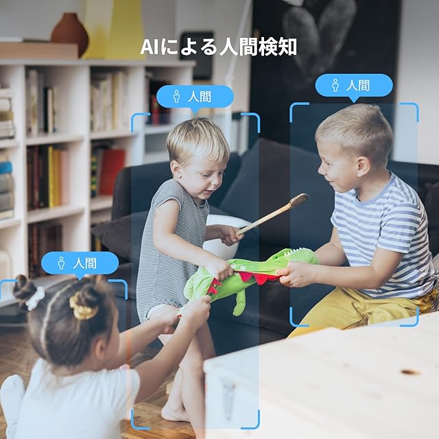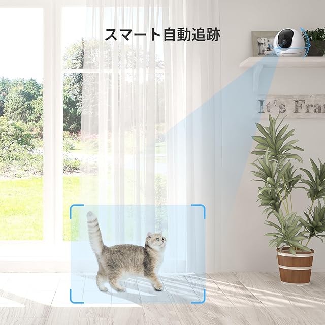 360度パン/チルト制御 水平350°・垂直90°|リビング全体を死角なく監視 4倍デジタルズームでペットの表情をクローズアップ