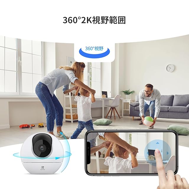 EZVIZ C6c ペットカメラ みまもりカメラ 防犯カメラ 2K解像度 AI検知 360度回転 スターライト暗視 Alexa連携 3年保証 日本仕様
