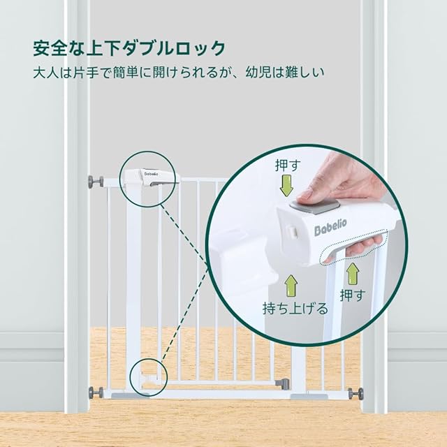 BABELIO ベビーゲート 階段上 オートクローズ 穴あけ不要 あつりょくとりつけ ペットゲート超狭小サイズ 拡張可能 取付幅68-93cm 高さ76cm
