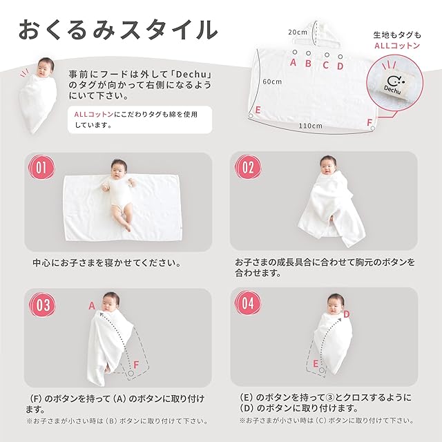 【対象年齢】 0歳から 男の子 女の子 問わずずっとご使用頂けます。【 商品内容 】Dechuベビーバスローブ 、 ギフト BOX、 メッセージカード、おくるみスタイル説明書
