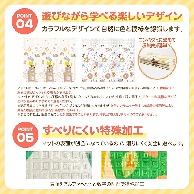 【遊びながら学べる楽しいデザイン】 カラフルなデザインで自然に色と模様を認識します。リバーシブル楽しさ2倍!コンパクトにたためて収納や屋外使用にも便利です。
