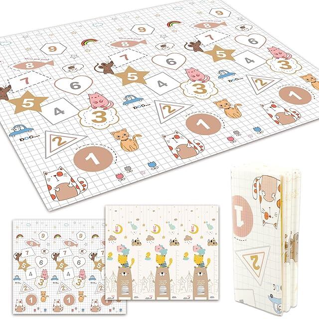 ベビーマット 【日本メーカー製安全検査済 保育士監修】fungoo® ベビープレイマット 赤ちゃん 折りたたみ 防音 防水 安全素材 遊べる 両面使用可 滑り止め (200x180x2cm, パターン2:クマ×数字)