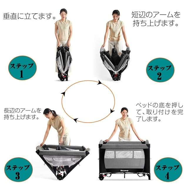 女性でも一人で組み立て可能です。ベッドには移動に便利な車輪がついていますので、キッチンからリビングルームなどへ、ベッドルームにバシネットを簡単に移動させることが出来ます。