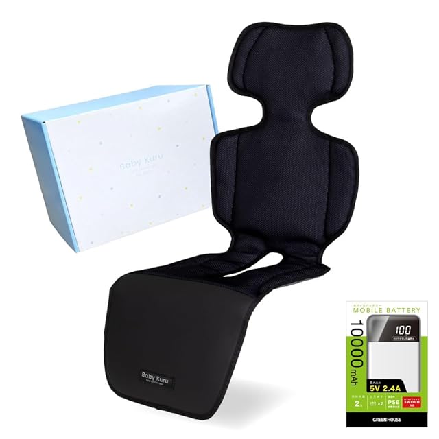 「足元防水 × ダブルファン」べびくるクール(BabyKuru)ブラック ファン付ベビーカーシートファン付 保冷剤ポケット&足元防水 冷却 保冷剤ポケット 送風&吸風モード クールシート 保冷シート チャイルドシートマット ベビクル (ブラック+モバイルバッテリー)