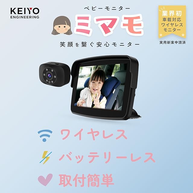 KEIYO【車載ベビーモニター】 業界初ワイヤレス接続 バッテリーレスで 取り付け簡単 AN-M017【公式ショップ】