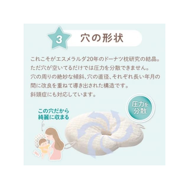 【頭の形を整える工夫された形状】 圧力を分散する特殊な形状で、赤ちゃんの頭の形 を整えます。赤ちゃんの絶壁防止に効果的です。