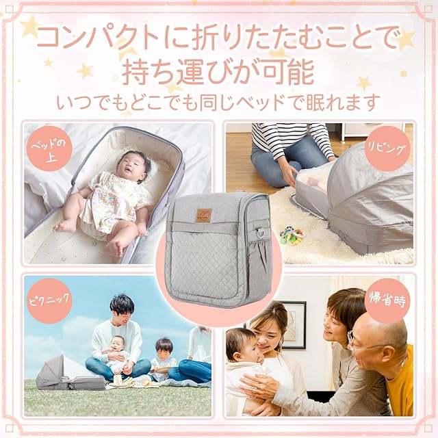 ココリズム (Cocorhythm) ベッドインベッド ベビーベッド クーファン 【現役保育士監修】 ポータブル 折りたたみ式 寝返り防止 新生児 携帯型ベビーベッド (ベージュ)