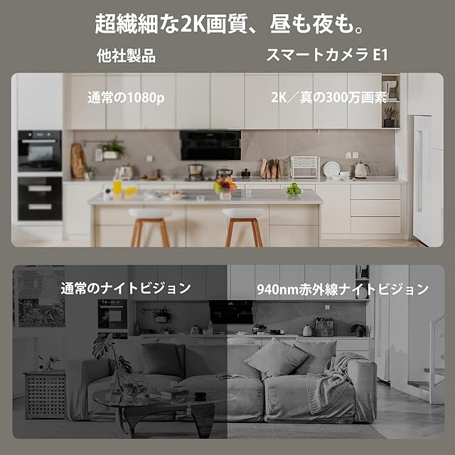 【超鮮明2K 1296pおよび360度の視野角】2304×1296ピクセルの高解像度(300万画素)と940nmの赤外線ナイトビジョンを搭載しており、昼でも夜間でも鮮明な監視が可能です。パンモーターにより360°の視野角を実現し、お宅の状態をはっきり把握することができます。