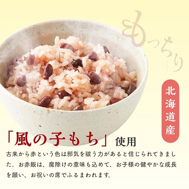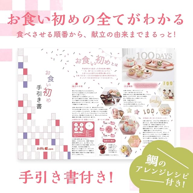 ●赤飯100g×1、●蛤×1、●お吸い物×1、●歯固め石×1、●祝箸×1、●鯛飾り×1、●敷き紙(白)×1
