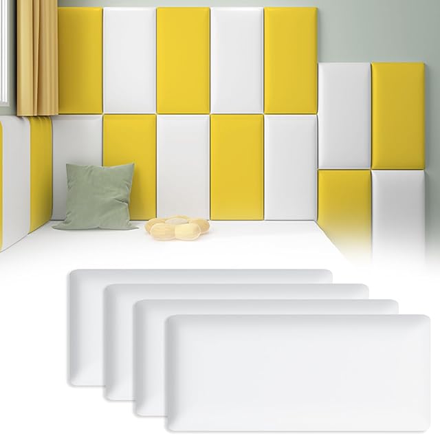 HARUMAKI ウォールクッション 壁クッション 4枚セット 長さ40cm×幅20cm×厚さ3cm 壁用クッションシート 自己粘着タイプ PUレザー+高密度スポンジ素材 衝撃吸収シート 防音マット 子供部屋用壁マット ベビー用コーナークッション 子供のいる家庭、子供の活動エリア、または家具の角など衝突しやすい場所に適しています (ホワイト)