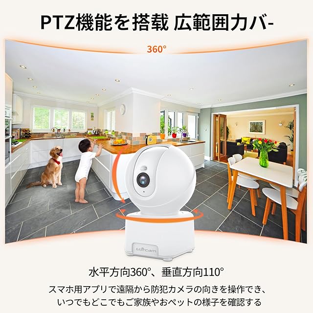 【ご家族やペットを見守る&多用途】① 防犯カメラは水平方向360°、垂直方向110°のPTZ機能を付きます。スマホ用アプリで遠隔から防犯カ【双方向会話・Alexa対応・複数ユーザー共有・取り付け/操作簡単】本見守りカメラには、高感度集音マイクと上質スピーカーが内蔵されていて、海外や出張先など遠い所でも、リアルタイムでお留守番中の子供や介護のお年寄りと会話したり、ペットに声をかけたりする可能です。Alexaにも対応し、Alexaに話しかけるだけでカメラの映像を確認できます。1台のカメラを複数の家族や友達