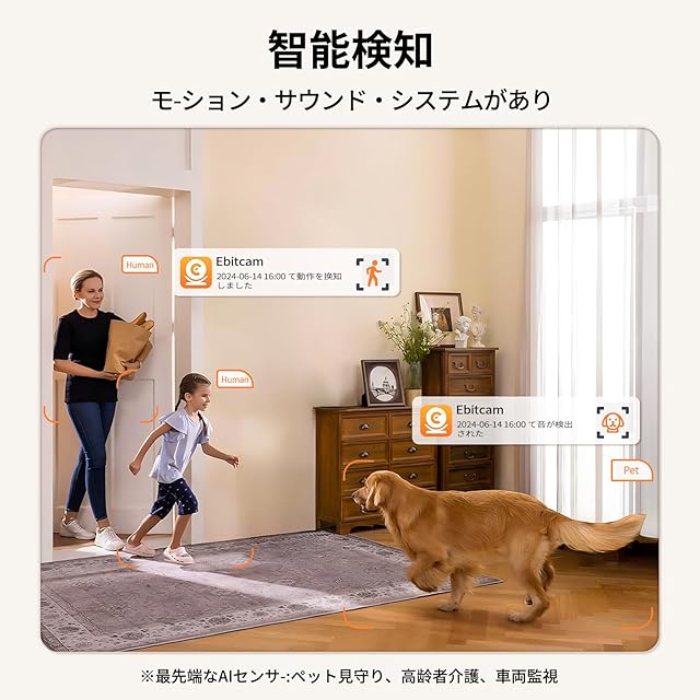 【300万画素・360°自動追跡】Ebitcam ペットカメラ 防犯カメラ ネットワークカメラ 室内 ペットカメラ 双方向会話 夜間撮影 355°首振り 自動追跡 人体/サウンド/モーション検知 PTZ首振り 警報通知 双方向会話 遠隔操作 子供 猫 犬 介護 ベビー/高齢者見守り インドア/玄関/店 監視カメラ Alexa対応 SDカード(512G) クラウド