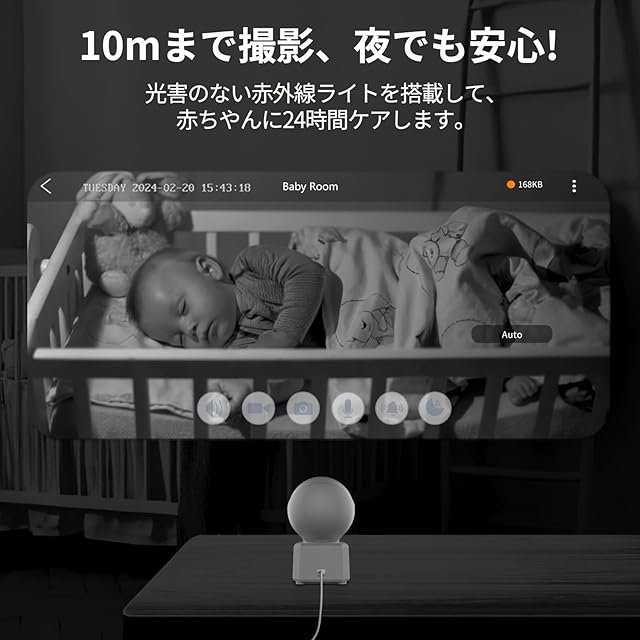 【300万高画質・優れた赤外線暗視撮影・8倍デジタルズーム】 この室内用ネットワークカメラは、1080Pから進化して、300万画素のCMOSセンサーを搭載して、従来のカメラと比べてより低ノイズ・高精細な映像を撮影できます。夜間でもはっきり撮影可能です。最大8メーターの優れたナイトビジョンを実現し、自動暗視で暗い場所でも赤ちゃんやペットをはっきりと見ることができます。 8倍デジタルズームに合わせて、必要に応じてズームアップして細部を確認することができます。(2.4GHz wifiのみ対応)(スムーズな動作を保証するために、設置場所を選ぶ際は、wifiネットワークの電波が強い場所を選んでください。)