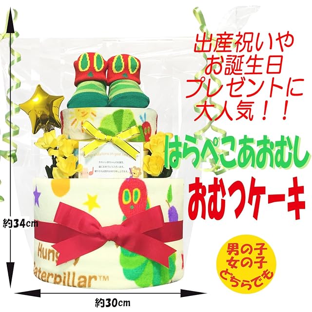 【特別な意味を持つギフト】 はらぺこあおむしのファンや、エリック・カールの絵本を愛する方への出産祝いとして、このおむつケーキは特別な意味を持ちます。贈る側の心遣いが伝わる、忘れられないプレゼントです。