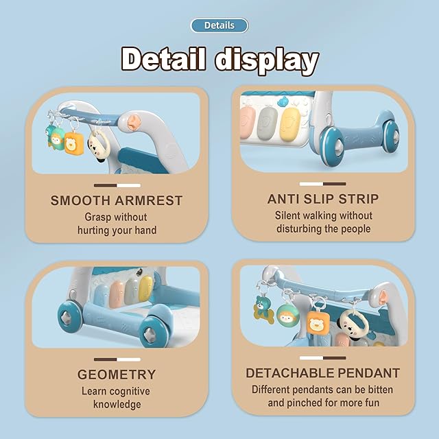ベビーピアノプレイマット、音楽付きおもちゃ、幼児向け遊び場 (Blue)