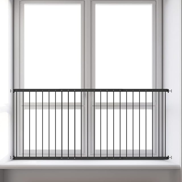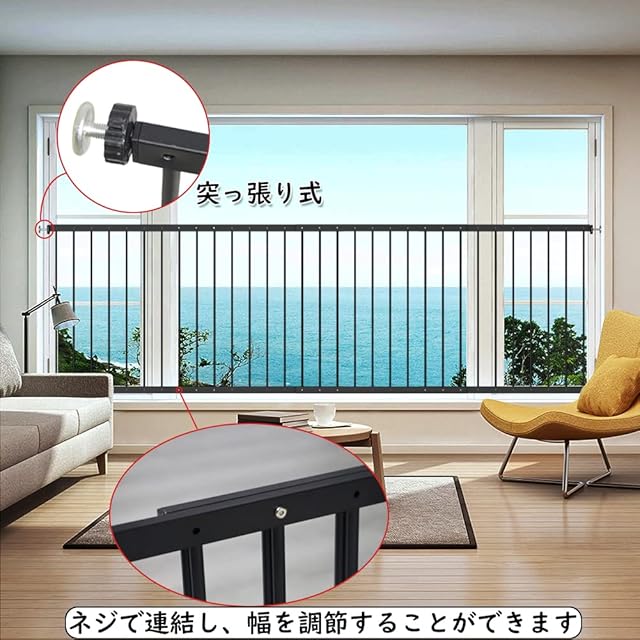Seogva 窓から転落防止フェンス 窓柵 ブラック ベビーゲート 窓用 高さ73cm 突っ張り式 フェンス3枚連結 簡単設置 説明書付き(設置幅:156-220cm)
