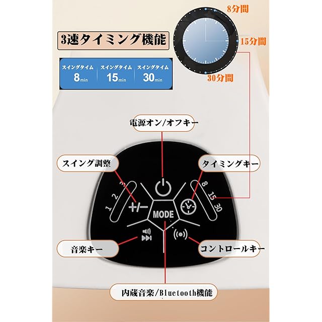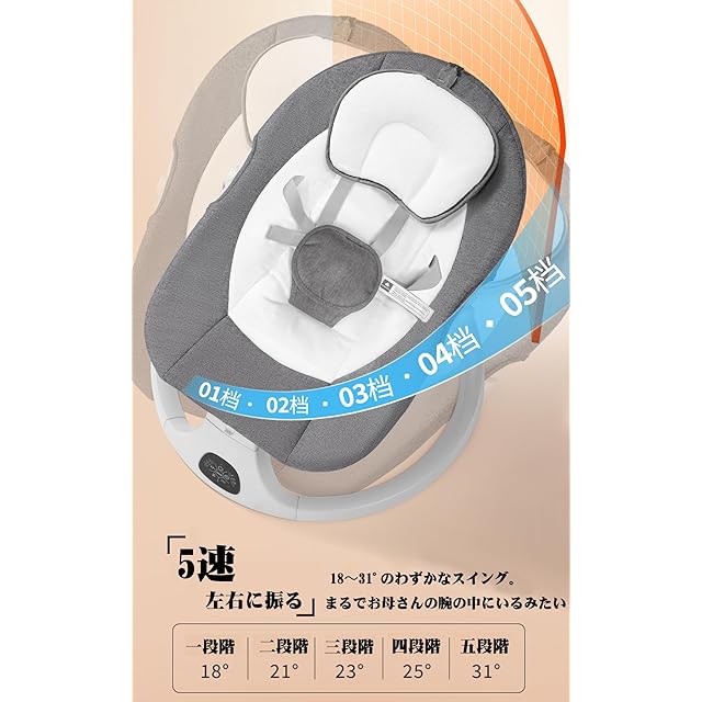【スウィング幅5段階&タイマー3段階調節可能】赤ちゃんの年齢や習慣に合わせて、5段階のスウィング幅と3段階のタイマーを調節頂けます。