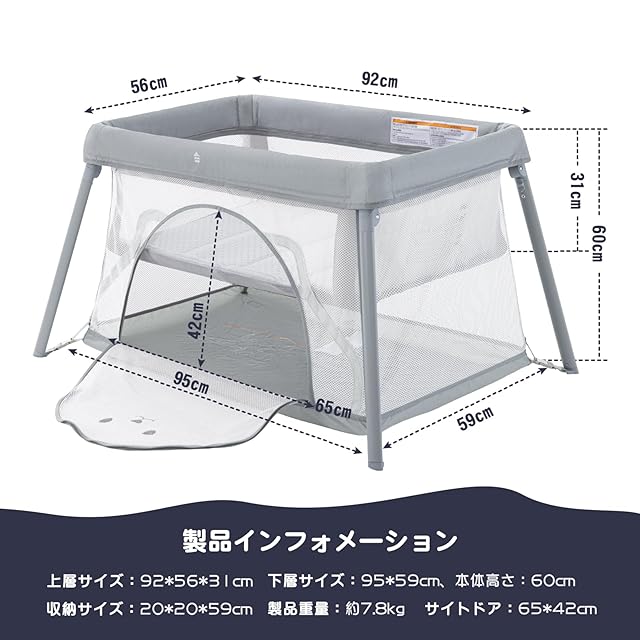 【高品質で快適・清潔】肌に優しい高品質素材を使用しているベビーベッドです。また、通気性抜群のマットレス使用で、ムレや汗から赤ちゃんを守り、快適な睡眠をサポートします。ベビーベッド展開時サイズ:縦95cm,横59cm,高さ60cm、収納時サイズ:長さ59cm,幅20cm,高さ20cm、サイトドア:65*42cm
