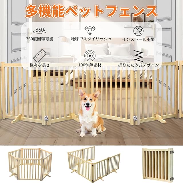 【ペット保護】ドアゲートは、ペットが危険な場所に入らないようにするための効果的な方法です。特に階段やキッチンなどの危険なエリアで使用すると便利です。開いた状態:高さ60cm、長さ363cm、新たにアップグレードされ、360°回転可能、用途に応じて自由にアレンジ可能。