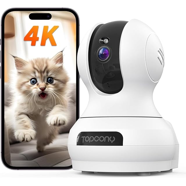 【4K 800万最高画素・2.4と5GhzWiFi対応・自動追尾】ペットカメラ 見守りカメラ 室内防犯カメラ 留守番 360°監視 24時間録画 スマホで見れる 遠隔操作 PTZパン355°チルト120° 赤外線暗視 双方向音声 Alexa対応 カード/クラウド アラーム通知 猫犬 赤ちゃん 年寄り介護 ベビーモニター iOS/Android対応 Topcony