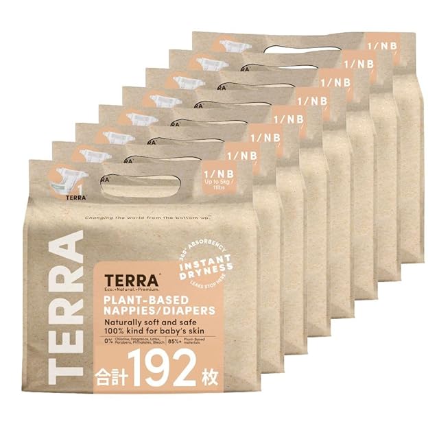 TERRA(テラ) おむつ 192枚(24枚×8パック) 超吸収 肌に優しい オムツ 夜用 お出かけ 敏感肌 さらさら 通気性 新生児期 テープ (新生児〜5kg) Newborn Diaper