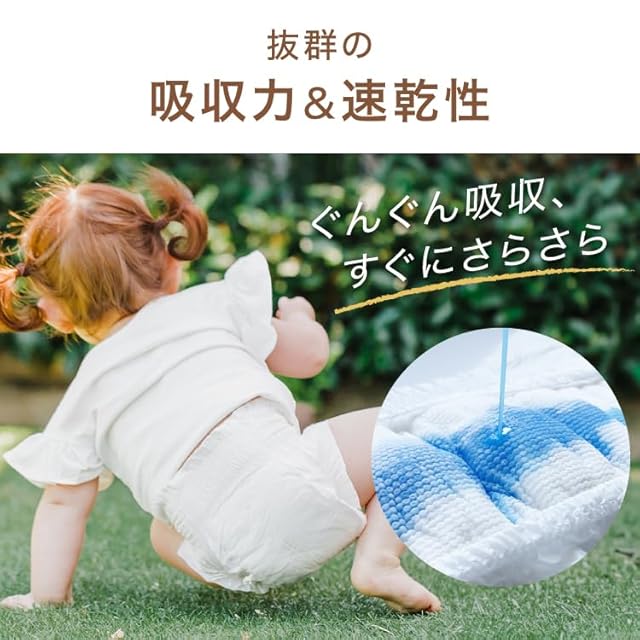 夜の睡眠時間や旅行の移動中など、長時間おむつを交換できなくてもムレない、かぶれない。
