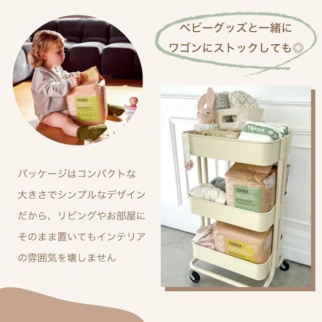 ストックの場所に困らないサイズとおしゃれなデザインで、お部屋にそのまま置いていてもインテリアの邪魔をしません。