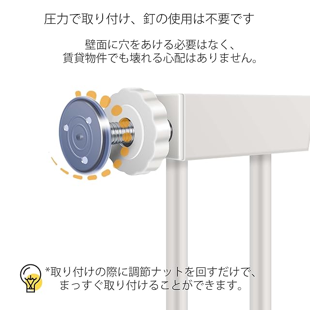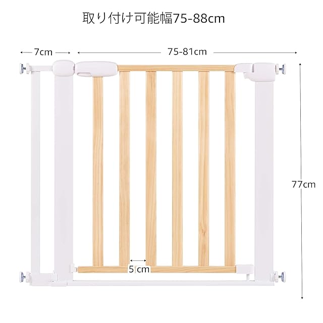 拡張フレーム付:拡張可能な子供用安全ゲートは、幅75cmから88cmまで調整可能。お宅の実寸に合わせて自由に設置できます。