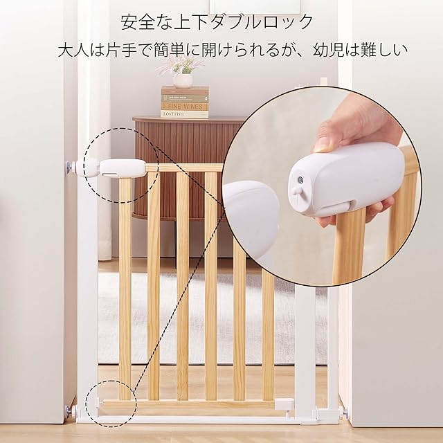 適用場所:玄関、廊下、部屋、キッチンなど、どんな場所にもマッチするインテリア調デザイン。ペット用ゲートとしても好評です。