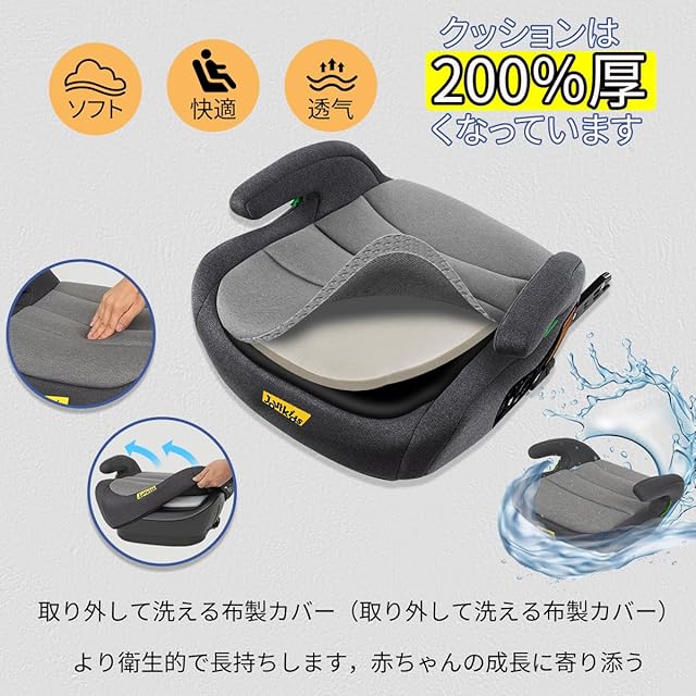 極厚シートクッション:シートクッションは200%厚く、表面はパッド入りでふわふわで、クッション性が良く、お子様の快適性が高く、長距離の旅行でも不快感を感じません。 また、布カバーは簡単に取り外して洗濯できるので、お手入れが簡単です。
