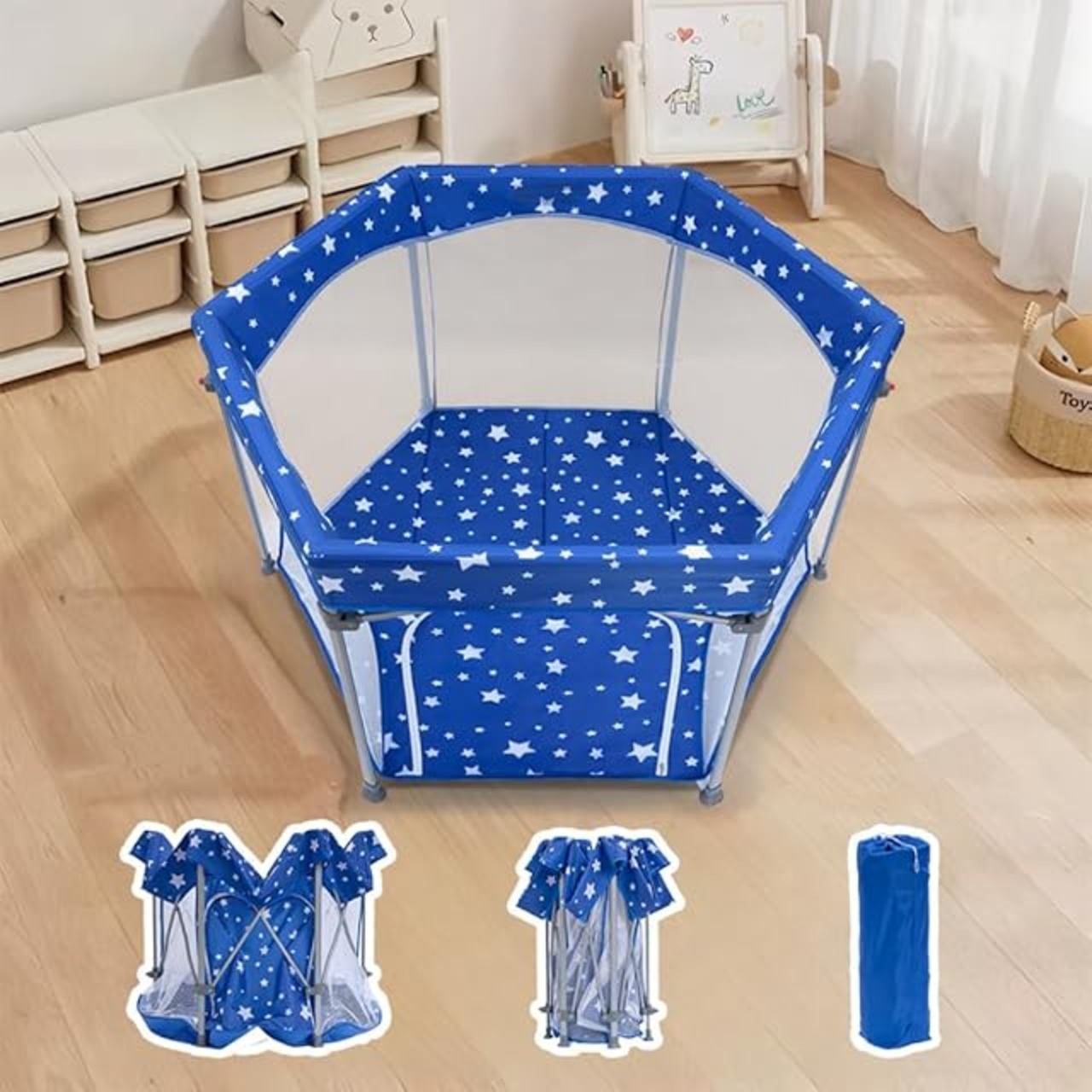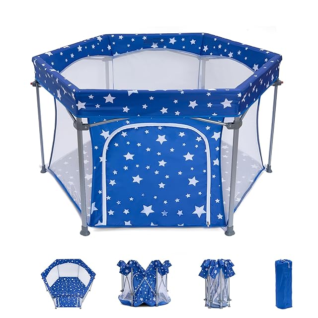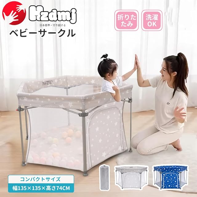 HZDMJ ベビーサークル 折りたたみ 簡単収納 洗濯機入れ ベビーサークル メッシュ 六角形 組立不要 ベビーフェンス コンパクト 洗える プレイヤード 新生児プレゼント ベビーゲート 持ち運び便利 出産祝い