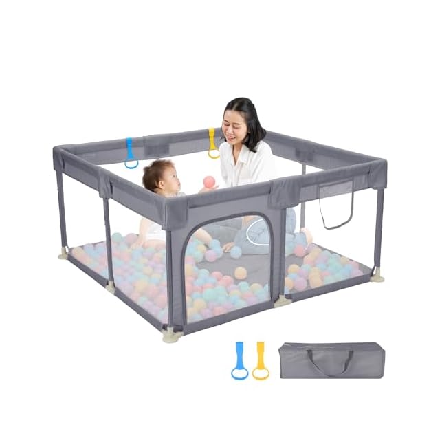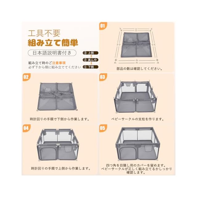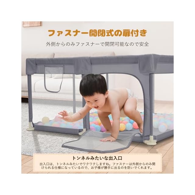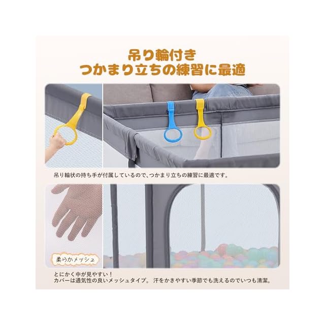【コンパクトなサイズが新登場!】このベビーサークルは正方形タイプで、お部屋の小さなスペースや寝室などにもちょうどいいサイズです。付属品:吊り輪×2(ランダムカラー)、収納バッグ×1、日本語取扱説明書×1。ご注意:該商品はボールが含まれていません。