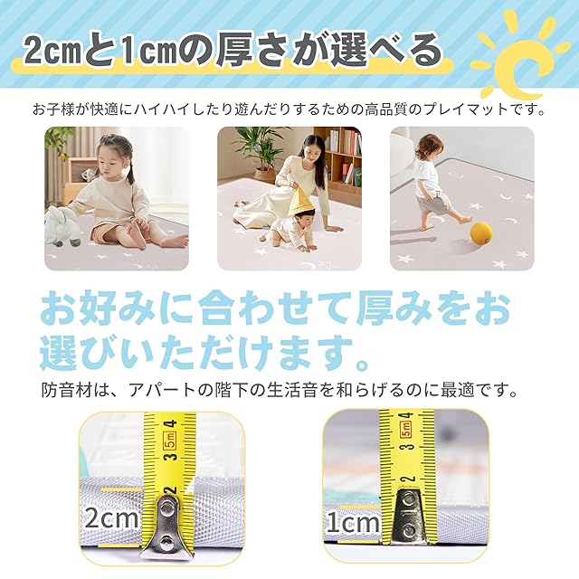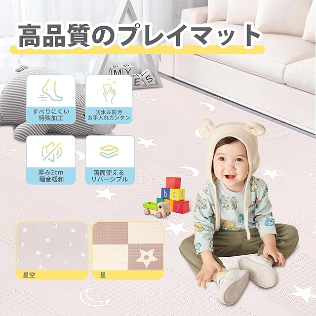 【高い快適性と優れたクッション性】厚さ2cmのXPEフォームスポンジ素材は弾力性と耐圧性に優れ、クッション性も優れており、子供たちに安全な遊び環境を提供できます。 マットの表面は通常柔らかいので、赤ちゃんはその上で這ったり遊んだりするのが非常に快適です。