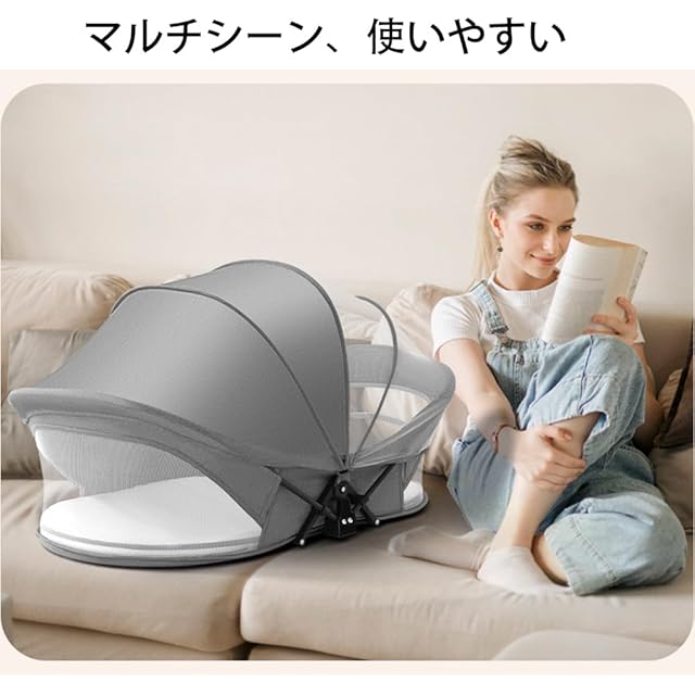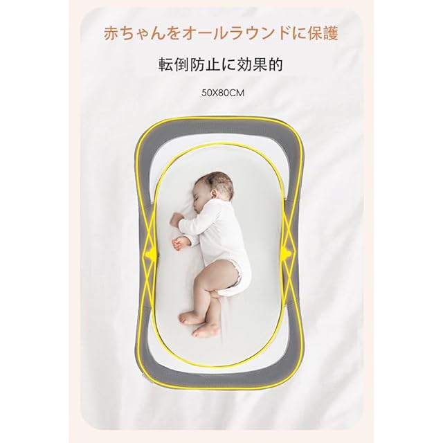 【赤ちゃんと同じベッドで寝ることができる】赤ちゃんと別のベッドで寝る必要もなく、赤ちゃんがベッドの中で転げまわって圧迫される心配もない、母親は自信を持って眠ることができます。メッシュカバーを開ければ、いつでも簡単に赤ちゃんと触れ合うことができます。