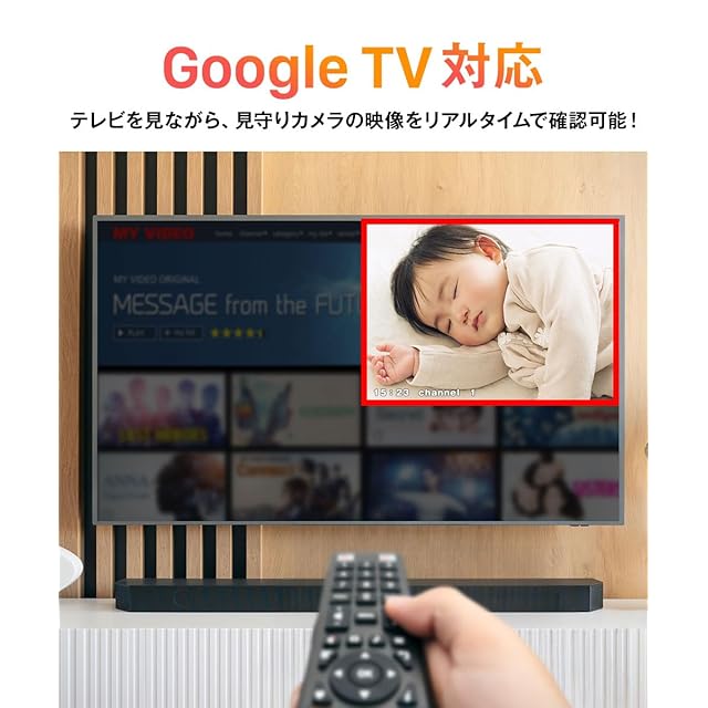 【Google TV対応・テレビでも映像を確認可能】 GoogleTV対応で、テレビ番組を見ながら監視映像も同時にチェック可能。見守りカメラやベビーカメラとして、家族やペットの様子をテレビで確認でき、日常の安心感がさらにアップ。スマホ・タブレットなどマルチデバイスに対応し、共有台数無制限。