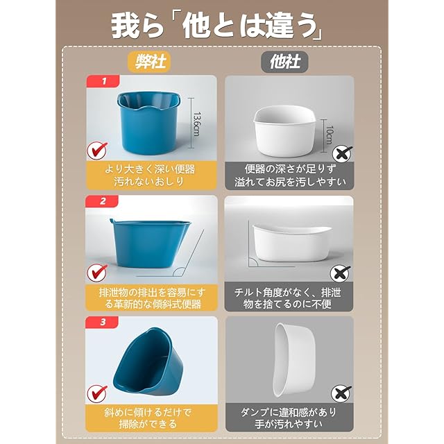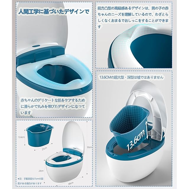 【しぶき防止の尿デザイン】 前面バッフルは高さを増し、溝が深くなり、尿がトイレの外にはねるのを防ぎます。小さな男の子と女の子が適しています。内部の収納ケースは取り外し可、ゴミ袋を入れて使用にもOK、お手入れに便利。