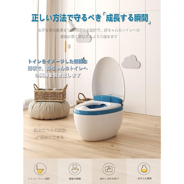 【清掃が簡単】分離式設計、洗浄が便利な一鉢の端、赤ちゃんは用便後、単独で分解しやすく。排泄物を処理するときは、中桶だけ取り上げて便器に流すだけでOK、滑らかな設計、水で洗うときれいになる。育児が忙しいママにとって、簡単にお手入れできるのは嬉しいです。