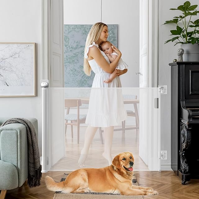 ベビーゲート ロール式 幅140CM(ドア横幅0.86M用) 巻き取り式 階段上 ペットゲート 高86CM ネジと両面テープ付き 階段ゲート 脫走防止ゲート 使いやすい 安全ロック機能 ベビーフェンス 伸縮型 赤ちゃん/ペット/猫/犬に適応 ホワイト [並行輸入品]