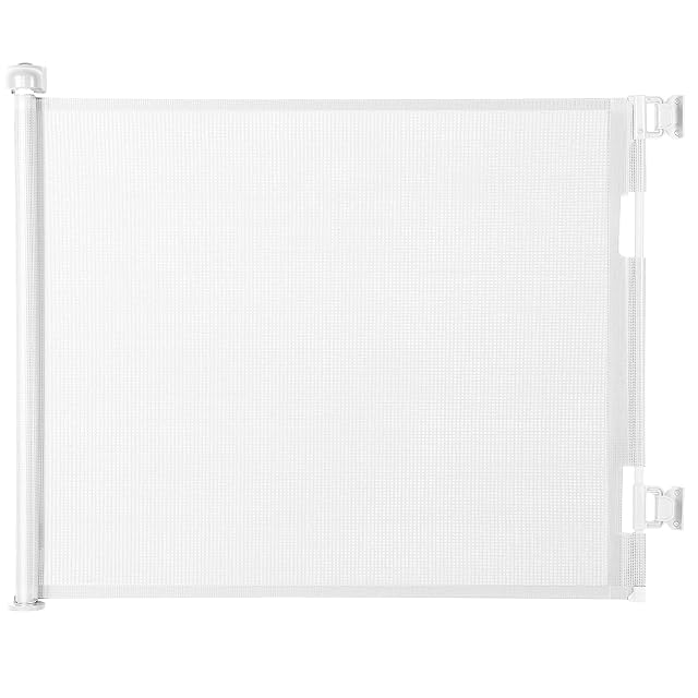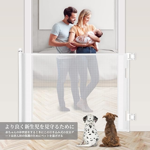 MYPIN ベビーゲート 引き込み式 ペットゲート 巻き取り式 子供安全ゲート ペット脫走防止 すっきりロールゲート ロック可能 ベビーフェンス 折りたたみ式 階段玄関廊下用 (ホワイトM)