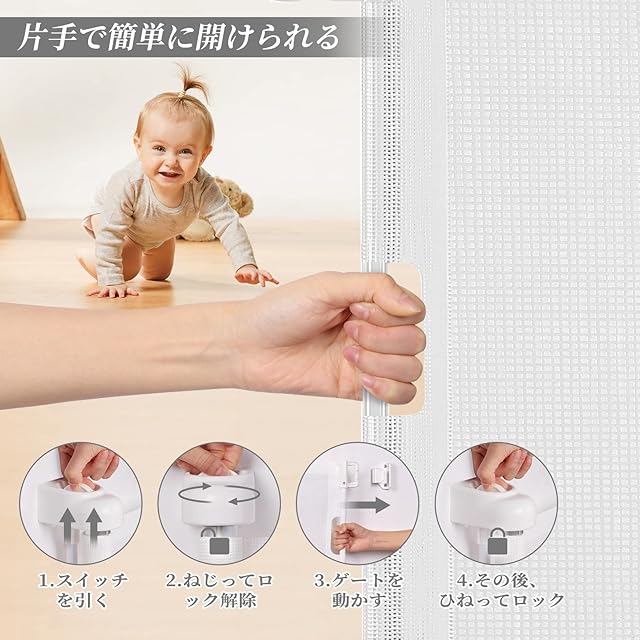 ベビー&ペットに保護:ベビーゲートは24時間でベビーの安全を保護することができます。赤ちゃんを安全にエリアで活動させます。ママの視線を離れた後に危険を発生して防止します。その他、安全フェンスとして、ペットを特定の場所に隔離して、家具が壊されるのを防止します。