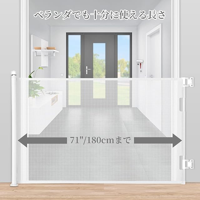 リトラクタブルデザイン:ロールゲートの幅は最大180cmまでストレッチ可能です。バリアフリー自由伸縮、様々なドアフレームに設置するのに適しています。スペースを節約できます。